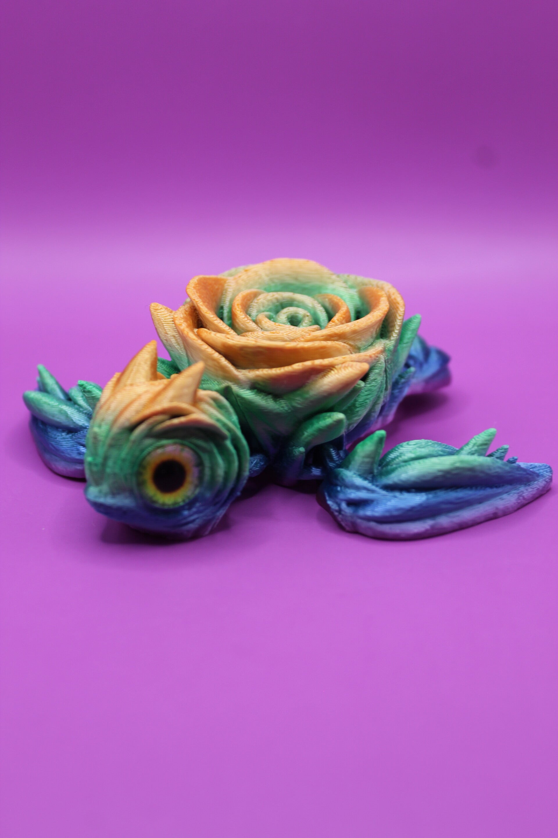 Bei diesem 3D Druck handelt es sich um eine Rosenschildkröte. Die Arme und Beine sind beweglich.