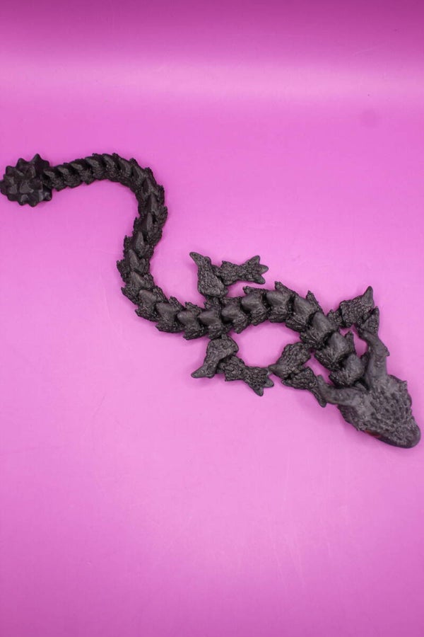 Bei diesem 3D Druck handelt es sich um einen Drachen. Er ist ca 22 cm lang und komplett beweglich.
